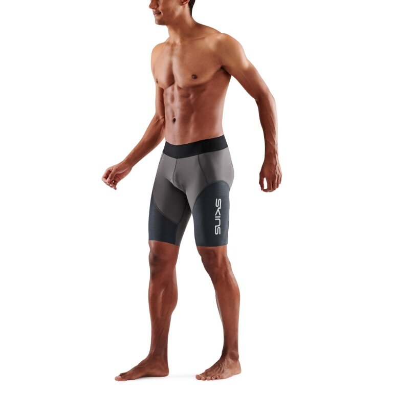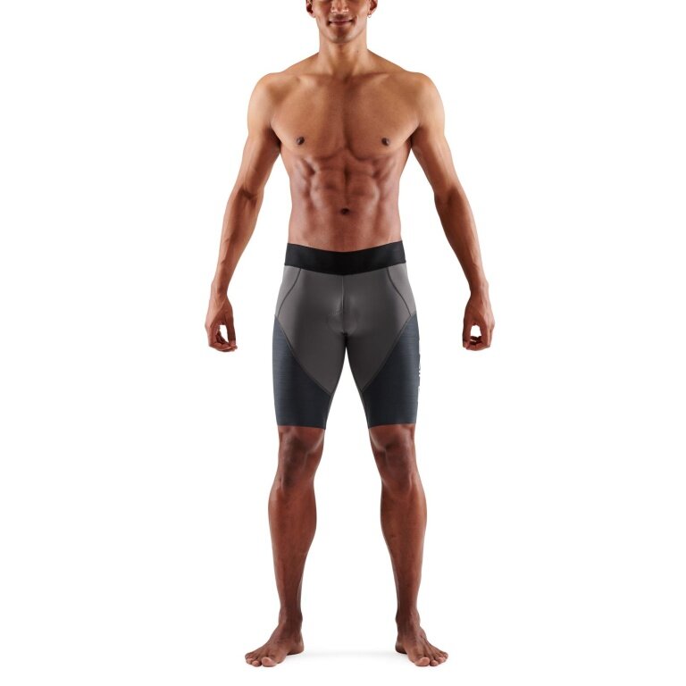 Skins Funktionshose TRI Elite Half Tight Short (für Triathlon, High-Tech-Kompression) charcoalgrau/carbon Herren