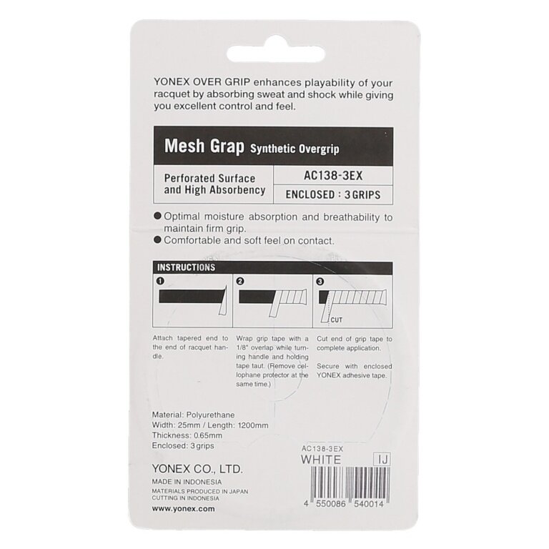 Yonex Overgrip Mesh Grap 0.65mm weiss 3er