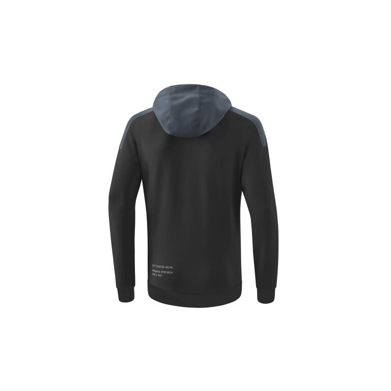 - ein echtes Highlight ist die eingearbeitete Kängurutasche. Abgerundet wird das Kapuzensweat durch die gefütterte Kapuze, den Rippbündchen an Ärmeln und Saum sowie dem ERIMA Slogan am Rückenteil