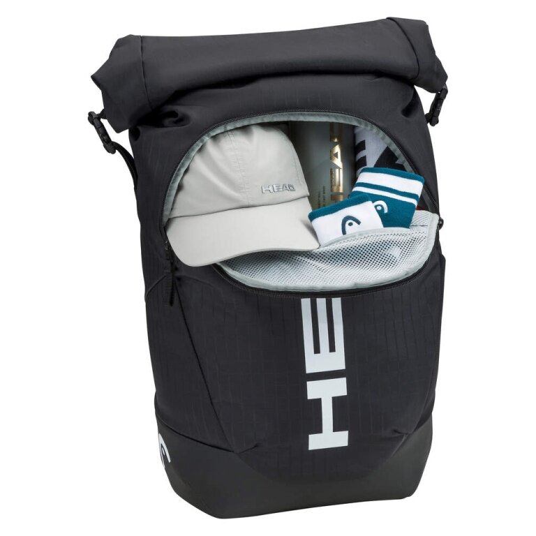 - neben einem Rolltop-Design verfügt diese Tasche über verschiedene Zubehörtaschen und ein Schlägerfach mit Platz für bis zu drei Schläger.