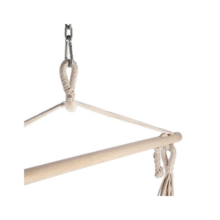 • in Kombination mit den dick gewebten, festen Seilen, einem massiven Holzrahmen und einem Metallgriff beträgt die maximale Belastbarkeit des Hängesessels 100 kg