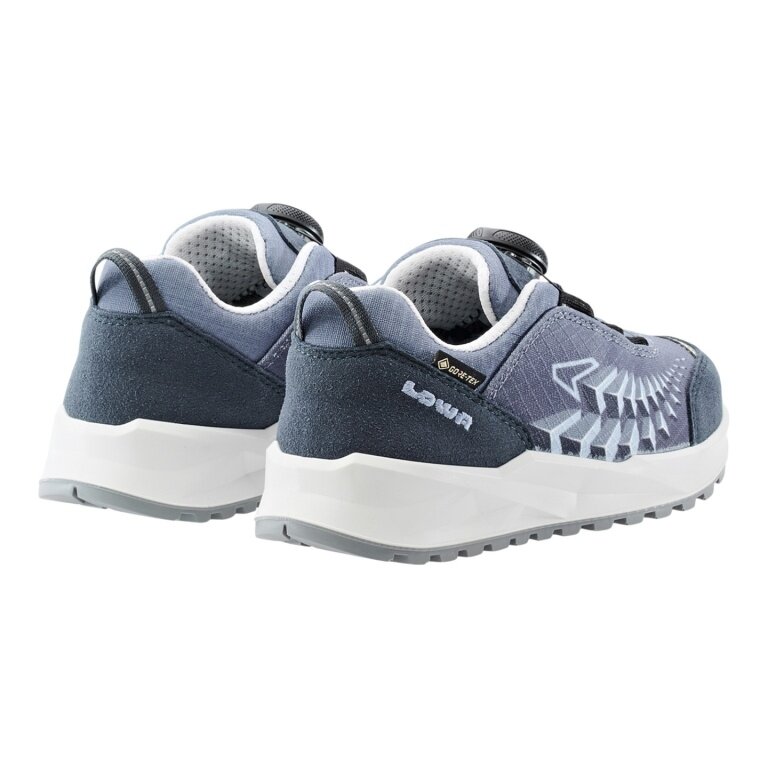 • dank dem BOA® Fit System mit Drehverschluss ist der neue FERROX GTX LO JR im Handumdrehen einsatzbereit. Einmal hineingeschlüpft, fühlen sich die kleinen Füße allein wegen des kindgerechten Leistens, der gut gedämpften LOWA® DYNAPU®-Zwischensohle und dem unterstützenden SUPPORT FRAME pudelwohl im Schuh.