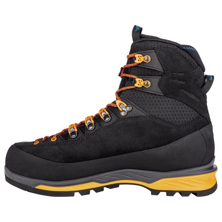 • ein umlau­fender Geröll­schutz sorgt dafür, dass spitze Felsen oder scha­rf­kantiges Glet­schereis dem Bergschuh nichts anhaben können