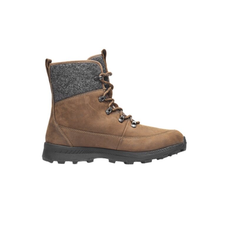• der über den Knöchel reichende Schaft besteht aus Filzwolle sowie ressourcenschonend gegerbtem, öligem Nubuk-Leder