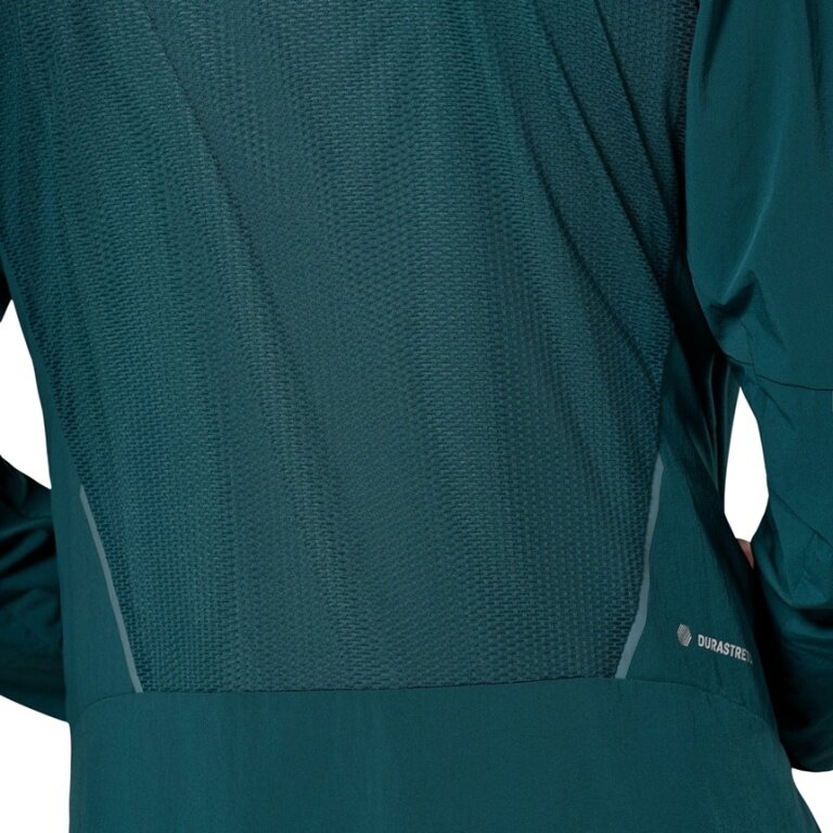 • nach dem Bodymapping-Prinzip wurde wasserabweisendes Durastretch für gezielten Wetterschutz am Oberkörper platziert, während ein leichterer, atmungsaktiverer Mesh-Einsatz am Rücken für optimale Belüftung sorgt.