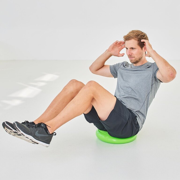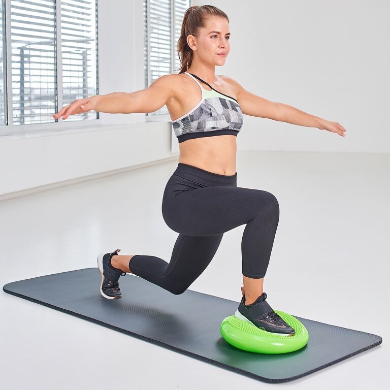 - rundes, aufblasbares Balance-Kissen aus PVC mit Massagenoppen, inklusive Minipumpe