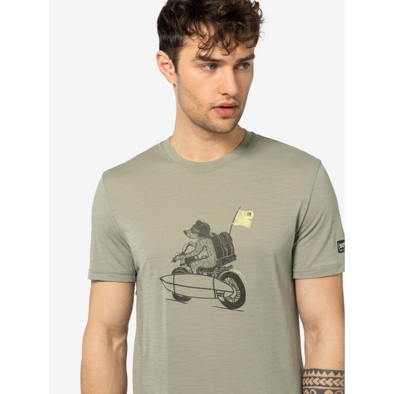 - das Highlight dieses Shirts ist der einzigartige Print: Eine Zeichnung eines Bären, der mit einem Motorroller und einem Surfbrett zum Strand fährt