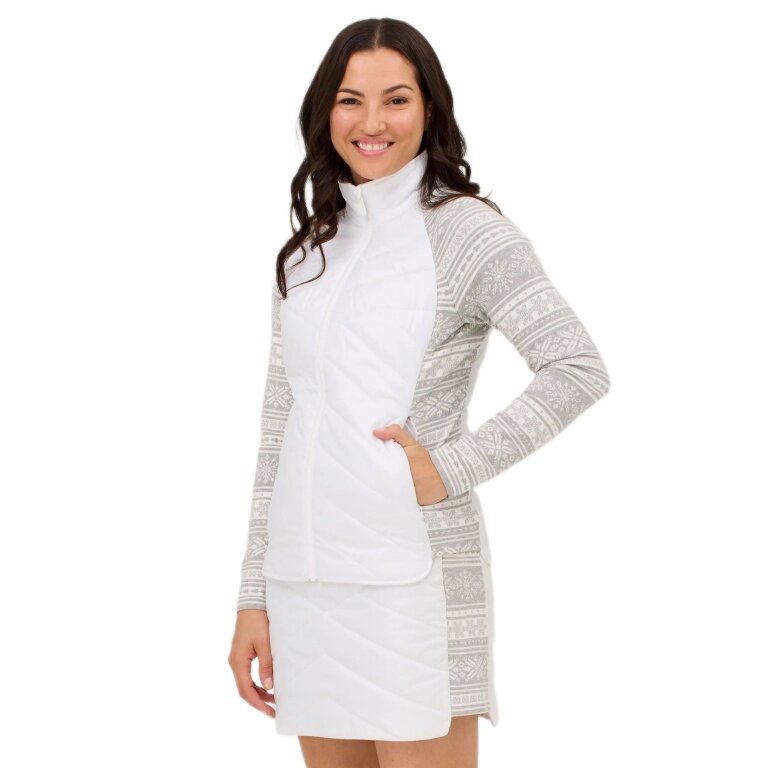 - sie ist als Zwischenschicht konzipiert und verfügt über Strickärmel und einen leicht isolierten, gesteppten Körper.