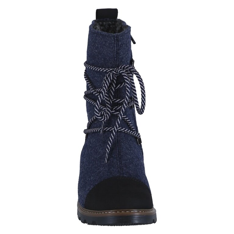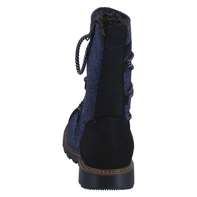 - OBERMATERIAL: dunkelblauer Wollfilz und braunes, gewachstes Nubuk – weist Wasser und Schmutz ab