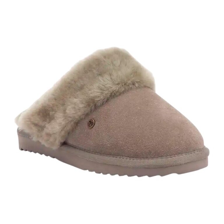 Warmbat Hausschuhe Pantoffel Flurry Suede mit Merino Schaffell moss/hellbraun Damen