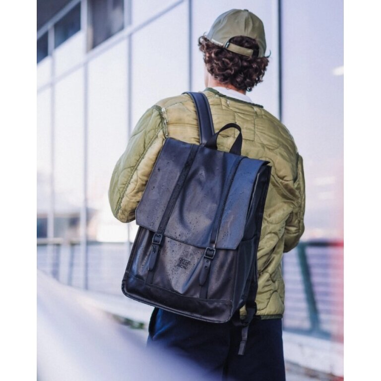 der Weather Resistant Survey™ Backpack ist mit einer matten Beschichtung versehen und wurde von regnerischen Pendelfahrten in Vancouver, British Columbia, inspiriert.