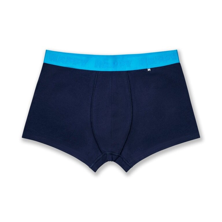 drei dunkelblaue Boxershorts, dazu knallige Bundfarben in Grün, Blau und Rot – ein echtes Statement unter der Gürtellinie.