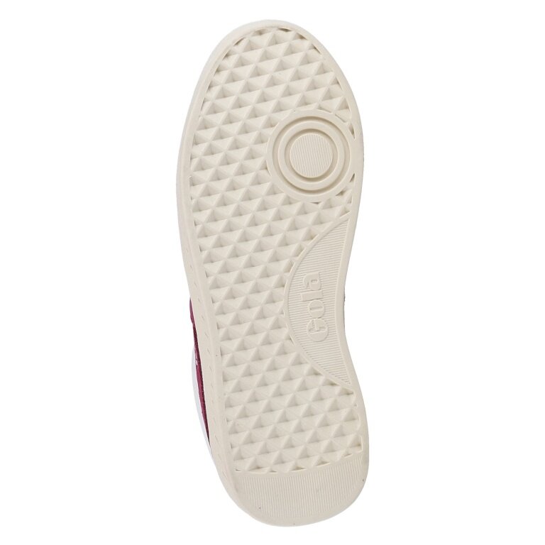 • dieser klassische Court Gola Damen-Sneaker mit einem Obermaterial aus strahlend weißem, zu 85% recyceltem PU und Wildleder-Farbakzentenist überall tragbar, wie auch immer Sie die Wahl wünschen