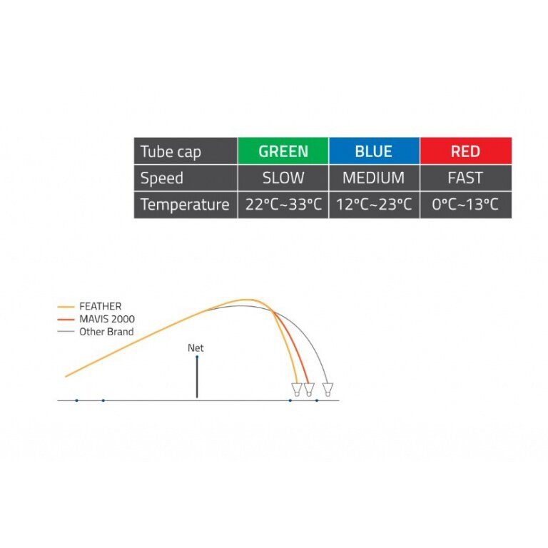 • der Mix aus hervorragenden Rotationseigenschaften und die extrem lange Haltbarkeit der MAVIS Nylon-Federbälle machen selbst lange Ballwechsel zu einem wahren Vergnügen