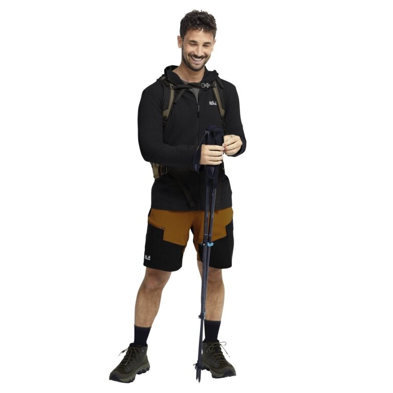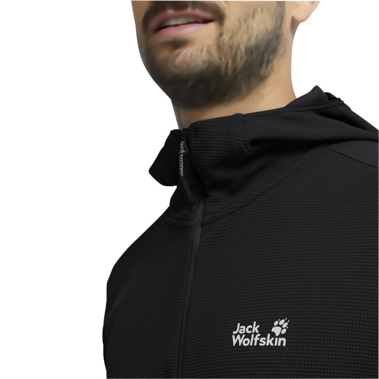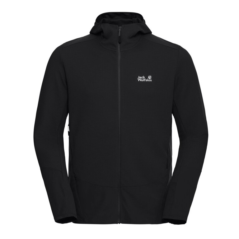 Jack Wolfskin Fleecejacke Ridge Hike Hooded Full Zip (mit Kapuze, atmungsaktiv) schwarz Herren