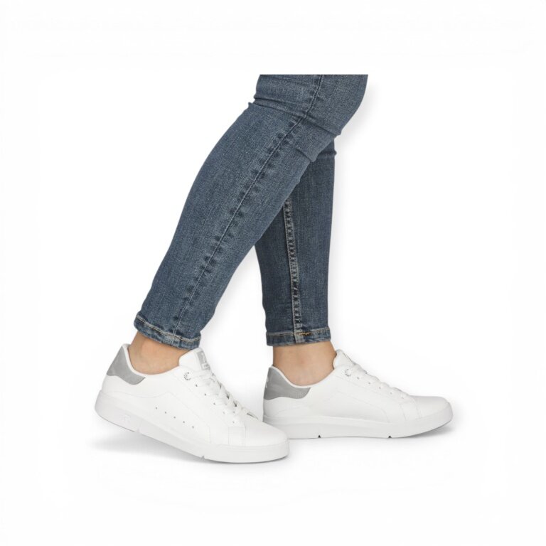 - Aus hochwertigem Glattleder gefertigte weiße Rieker Sneaker Low für Damen
