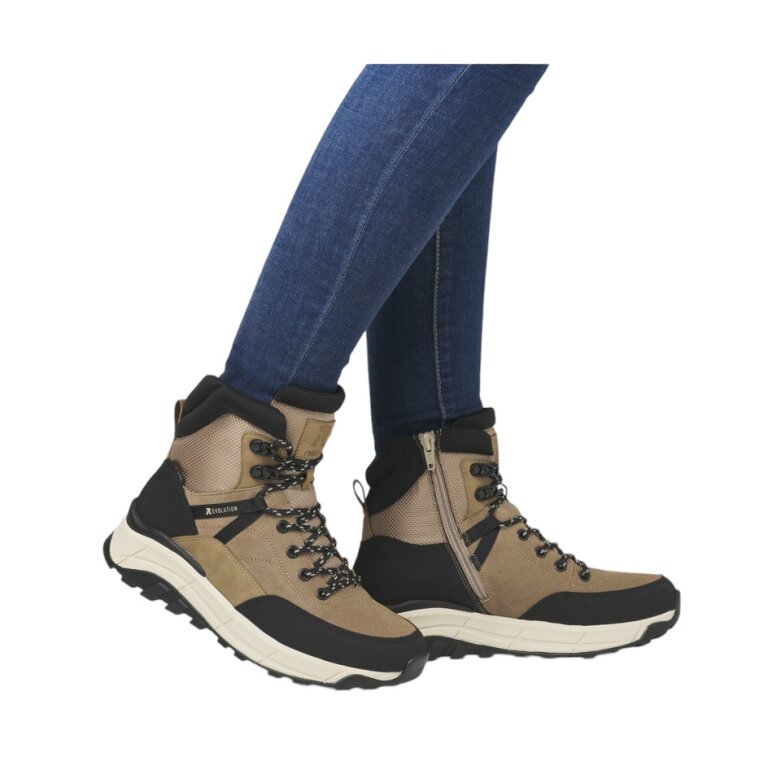 - Rieker Schnürstiefel für Damen in Braun, aus wertigem Textil gefertigt.