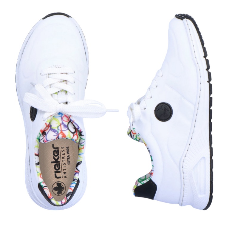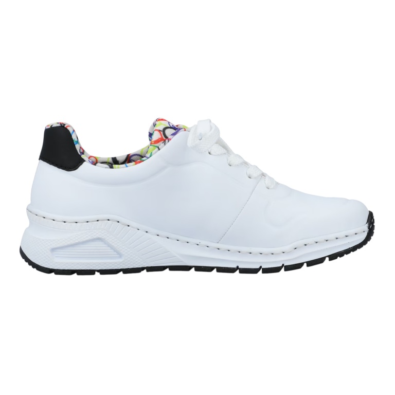 - diese weißen Rieker Sneaker Low geben dem Fuß Freiraum und halten ihn dennoch sicher.
