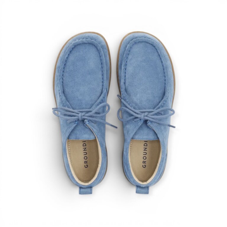 Groundies Mokassin Cricket (Zero Drop, Veloursleder) blau Herren