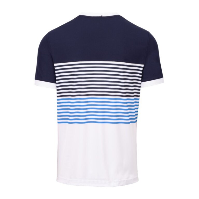 - der Rumpf in Weiß kombiniert mit einer klaren, horizontalen "Björn Borg Monte Carlo" Streifengrafik, welche einen dynamischen Verlaufseffekt erzeugt. Ideal für Teamwear
