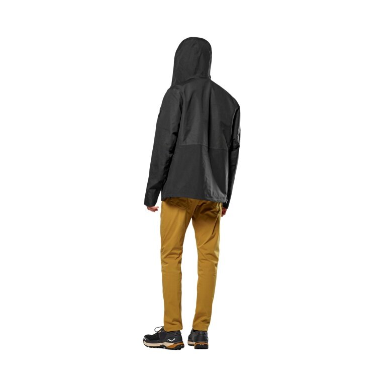 - die Fanes Hemp Powertex 3L Jacket kommt mit einer Vielzahl an durchdachten Features: die Kapuze ist verstellbar, die Knopfleiste mit Druckknöpfen in der Front ermöglicht zusätzliche Belüftungsoptionen. Zudem lassen sich die Ärmelabschlüsse über Druckknöpfe in der Weite regulieren und Kleinigkeiten entweder in den zwei Seitentaschen mit Reißverschluss oder der Durastretch-Softshell-Innentasche verstauen