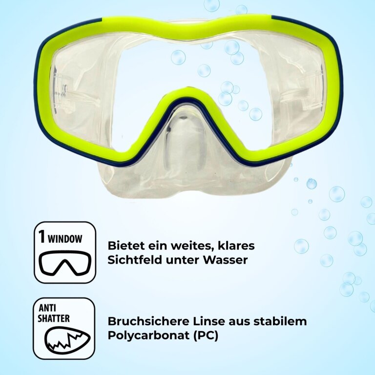 • Lieferumfang: 1x Silikon-Tauchbrille für Kids und 1x Silikon-Schnorchel