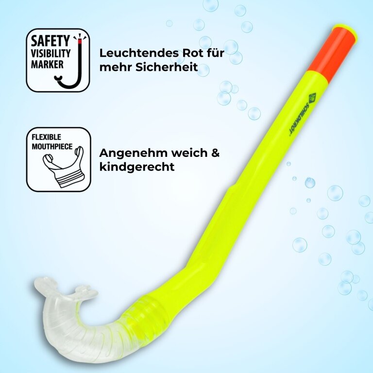 • Komfortabler Schnorchel – Mit flexiblem, kindgerechtem Mundstück, Clip zur Maskenbefestigung und roter Sichtbarkeitsmarkierung für maximale Sicherheit im Wasser