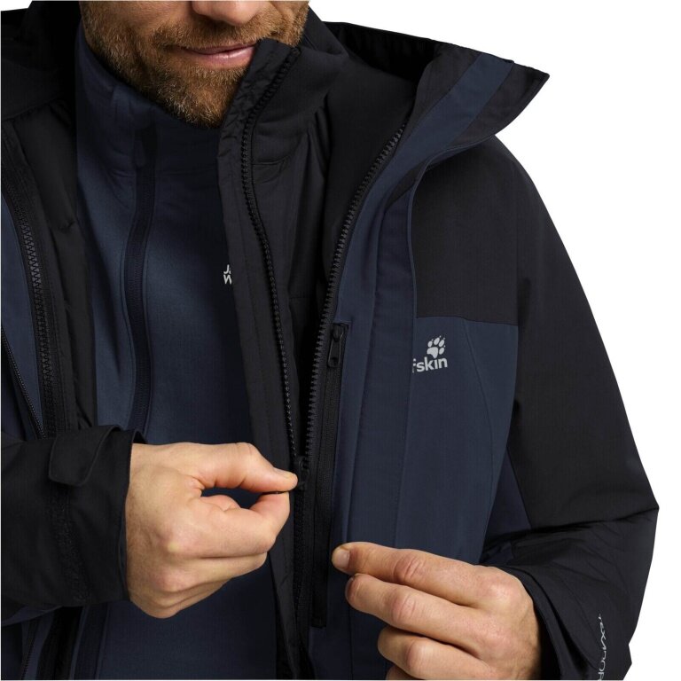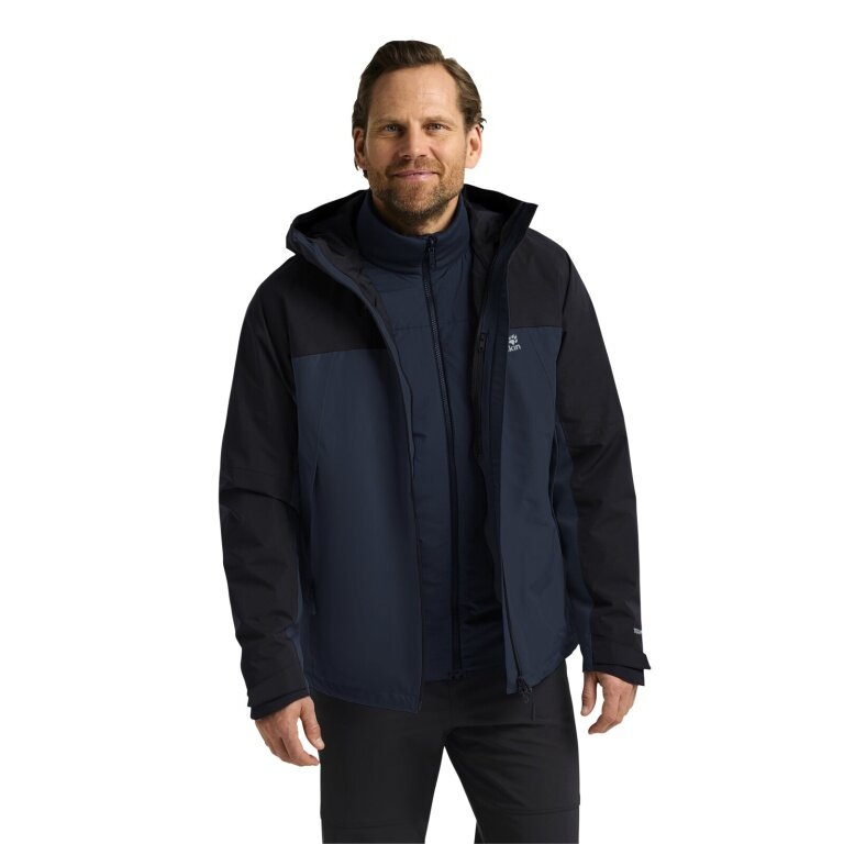 Jack Wolfskin Übergangs-Wanderjacke Wild Places 3in1 (wasserdicht, winddicht) nachtblau Herren