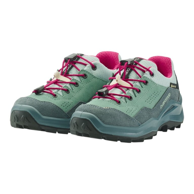 Lowa Wanderschuhe Wandax LO GTX (Veloursleder/Synthetik, wasserdicht) petrol/pink Kinder
