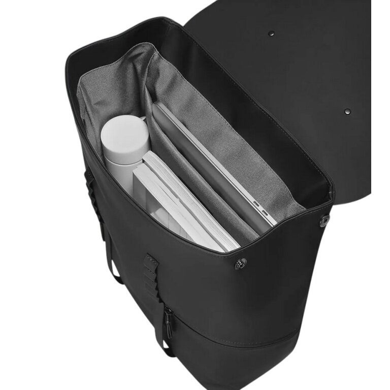 • der elegante Doppelriemen-Klappverschluss sorgt dafür, dass all deine Gegenstände sicher im Hauptfach verstaut sind, das bequem einen 16"-Laptop, Notizbücher und alle wichtigen Dinge aufnimmt.