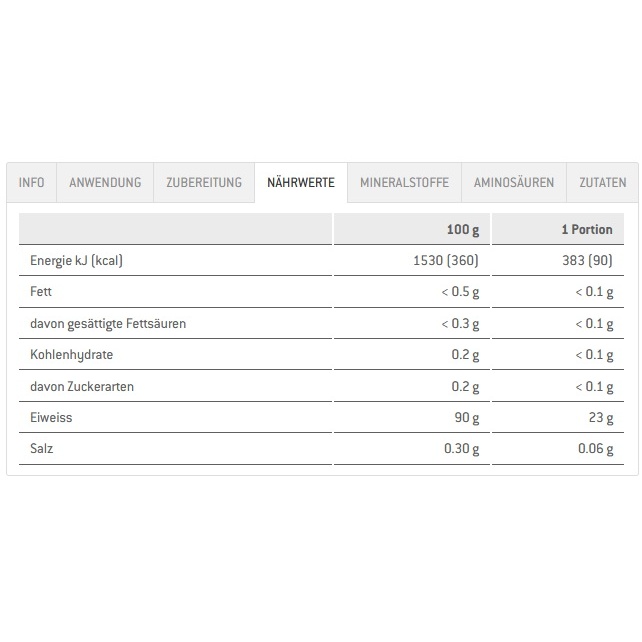 • Zutaten: Molkeproteinisolat (Irland), Emulgator Sonnenblumenlecithin