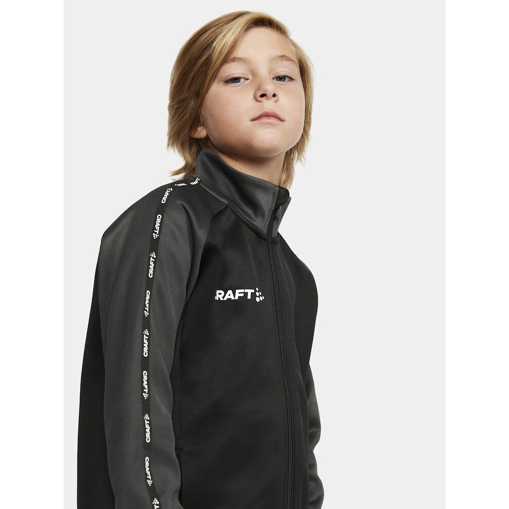 Craft Sport-Trainingsjacke Squad 2.0 Full Zip (mit Seitentaschen, elastisch Funktionsmaterial) schwarz/grau Kinder