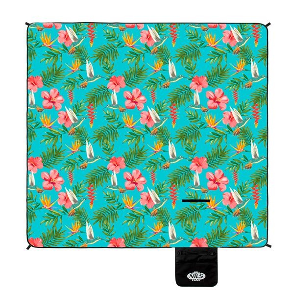 Nils Camp Picknickdecke NC8019 (Motiv Kolibri) grün 200x200cm