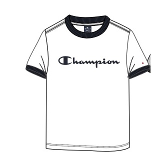 Champion Freizeit-Tshirt (Baumwolle) Crew Ringer mit Logo-Schriftzug weiss Kinder