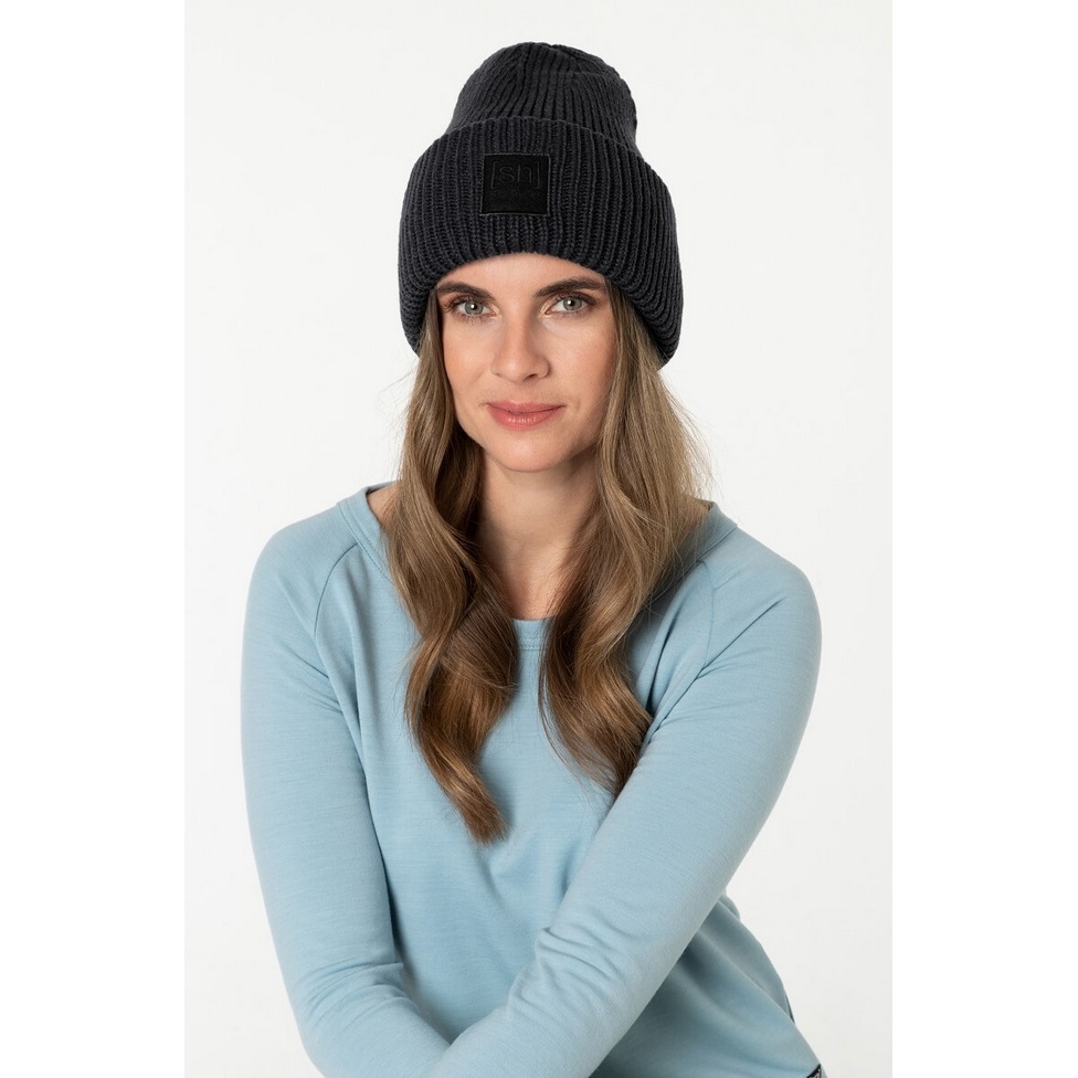 • die moderne Oversized Krissini Beanie von super.natural mit Ton-in-Ton Aufnäher aus weichem, breit geripptem Merinowollstrick punktet nicht nur mit einem unglaublich angenehmen Tragegefühl sondern auch mit einem modernen Design