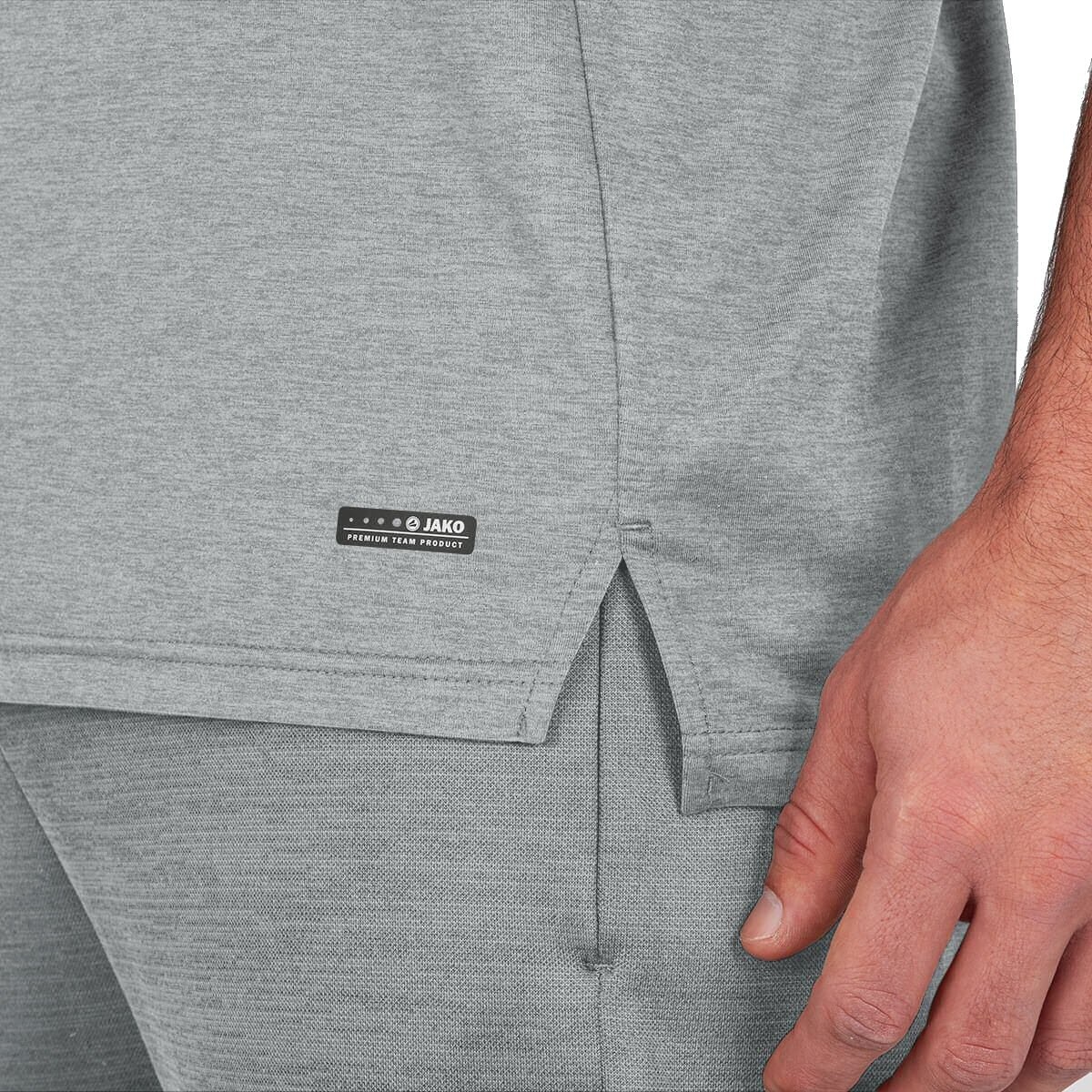 • das Kontrast-Tape an der Schulter, die seitlichen Kontrast-Tapes und das Teamline Label machen das T-Shirt in Kombination mit der modernen Melange Optik zum absoluten Highlight