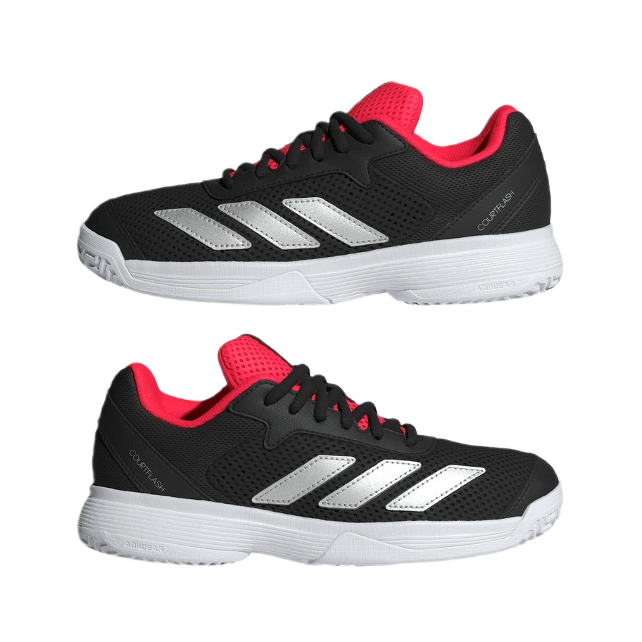 • dieser adidas Courtflash Schuh für Kinder kommt mit einem Obermaterial aus Mesh für kühlen Tragekomfort und einer strapazierfähigen Adiwear Außensohle, die rasanten Richtungswechseln und flinker Beinarbeit standhält.