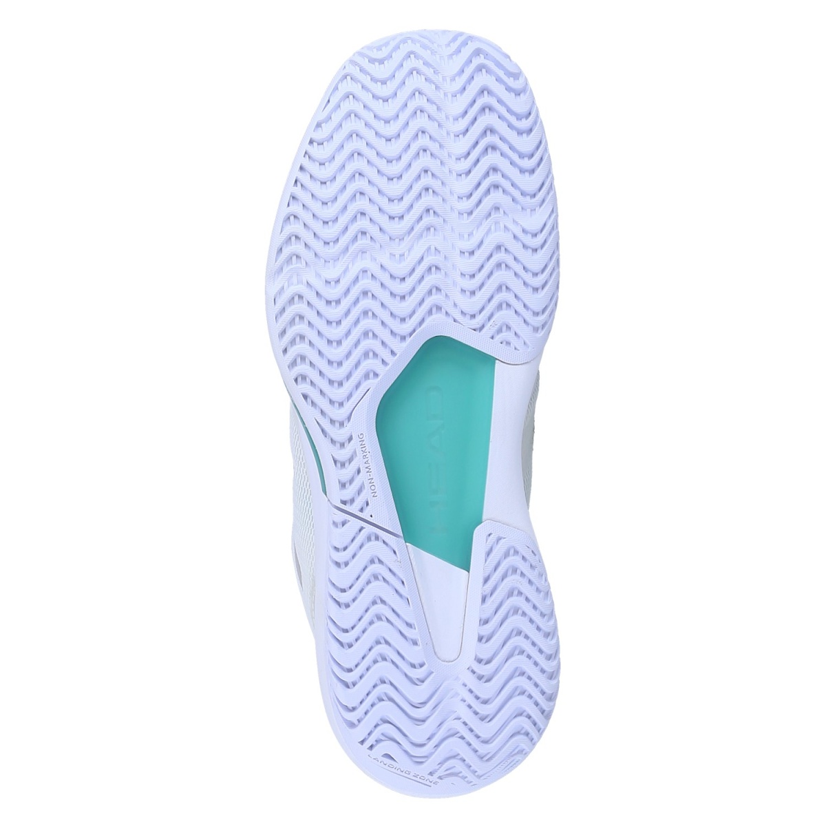 • die Hybrid-Außensohle, die aus HEADs Hybrasion+ nicht abfärbender Gummimischung für optimalen Grip und Haltbarkeit besteht, ist für alle Oberflächen konzipiert, mit speziellen Haltbarkeitszonen für Hartplätze sowie offenen Profilzonen zur Verbesserung des Grips auf Sandplätzen