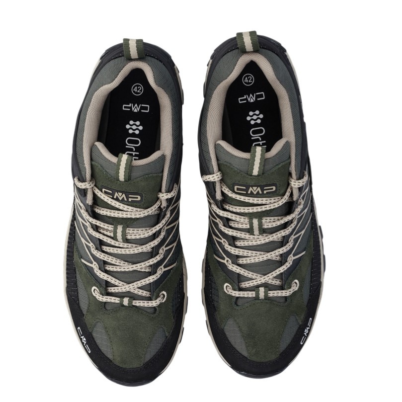 • CMP Rigel Low ist ein niedriger, wasserundurchlässiger und vielseitiger Herren-Trekkingschuh, der sich dank der Struktur und des Material-Gemischs der Sohle CMP FullOn GRIP für alle trockenen und nassen Oberflächen eignet