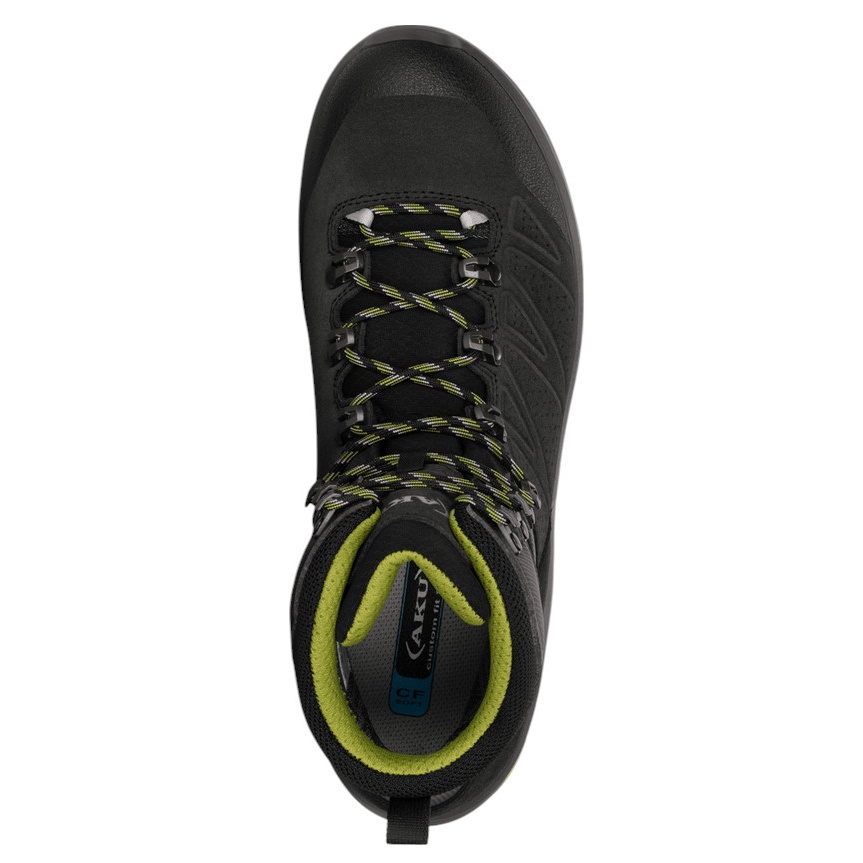 Aku benutzt auch bei angespritzten Schuhen in allen Bearbeitungsphasen, auch beim Schnüren, Montieren, Abkühlen und Finish, eine spezielle entfernbare Form. Es handelt sich dabei jedoch um die zwei kritischsten Phasen, denn gerade nach dem Anspritzen und Abkühlen nimmt der Sohlenpolyurethan seine Form an, die aufgrund der natürlichen Schrumpftendenz des Polyurethans verloren gehen würde, wenn sich im Schuhinnern nicht die herausnehmbare Form befinden würde.