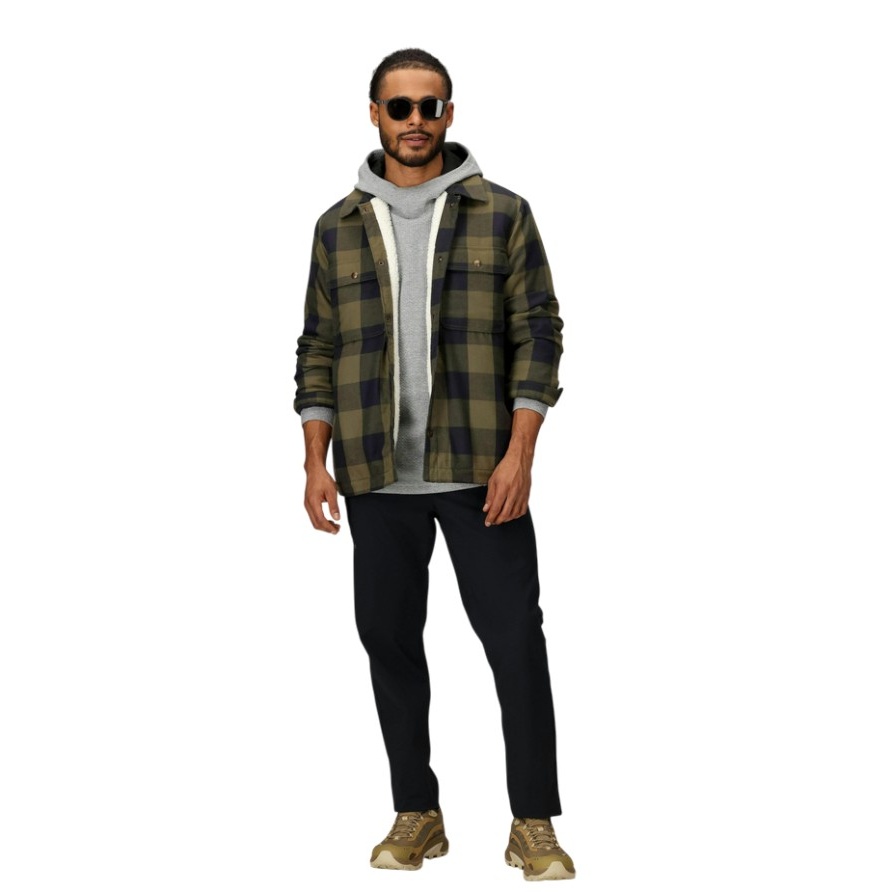 • die Hemdjacke, die ganz einfach mit allem kombinierbar ist – die Men's Ridgefield Sherpa-Lined Flannel Jacket eignet sich perfekt für kaltes Wetter, ganz egal, ob man früh morgens in der Einfahrt Schnee schaufeln muss, spät abends noch am Lagerfeuer abhängt, nachmittags durch die Cafés oder abends abseits der Piste durch die Bars zieht.