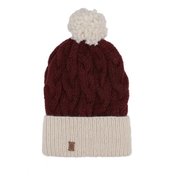 Medima Wintermütze mit Bommel (Pompon) - Merinowolle, Rippenstruktur, Umschlag - bordeaux/rot - 1 Stück