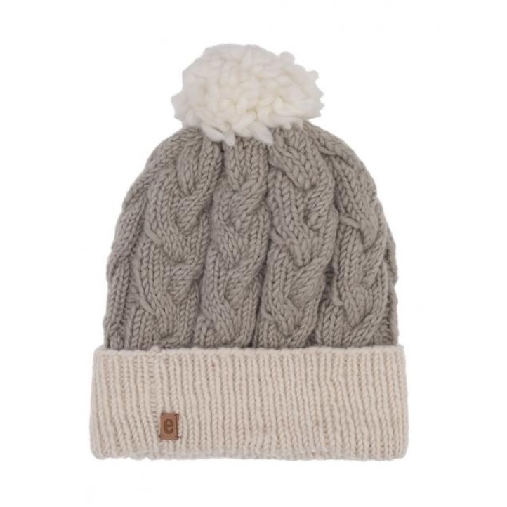 Medima Wintermütze mit Bommel (Pompon) - Merinowolle, Rippenstruktur, Umschlag - grau - 1 Stück