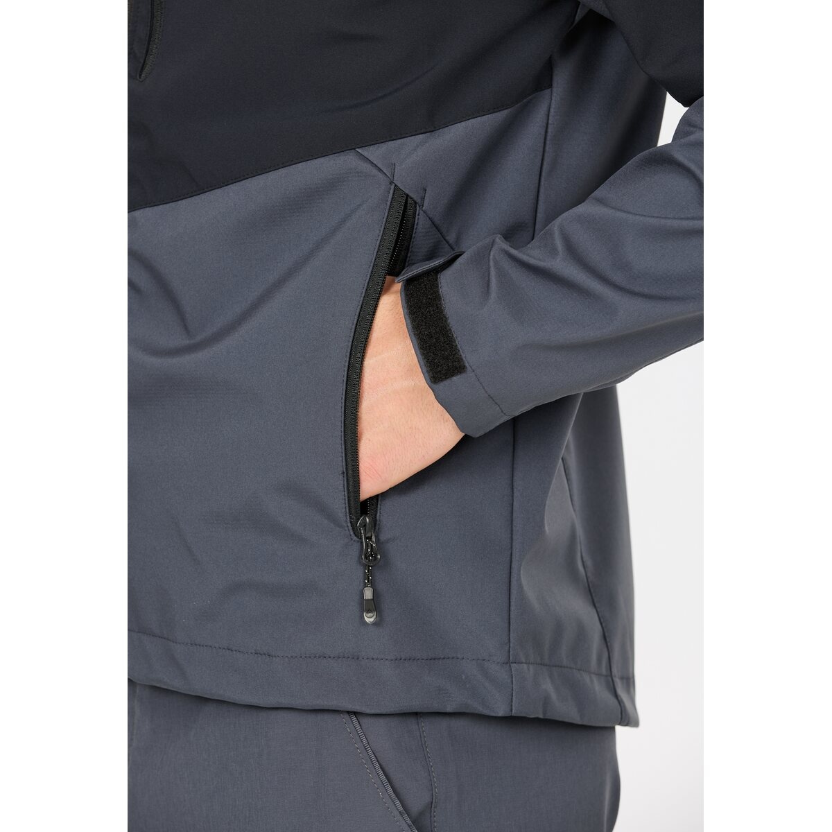 • die Softshelljacke für Herren bietet eine sportlich-maskuline Passform, die dir viel Bewegungsfreiheit lässt.