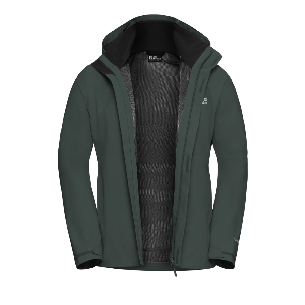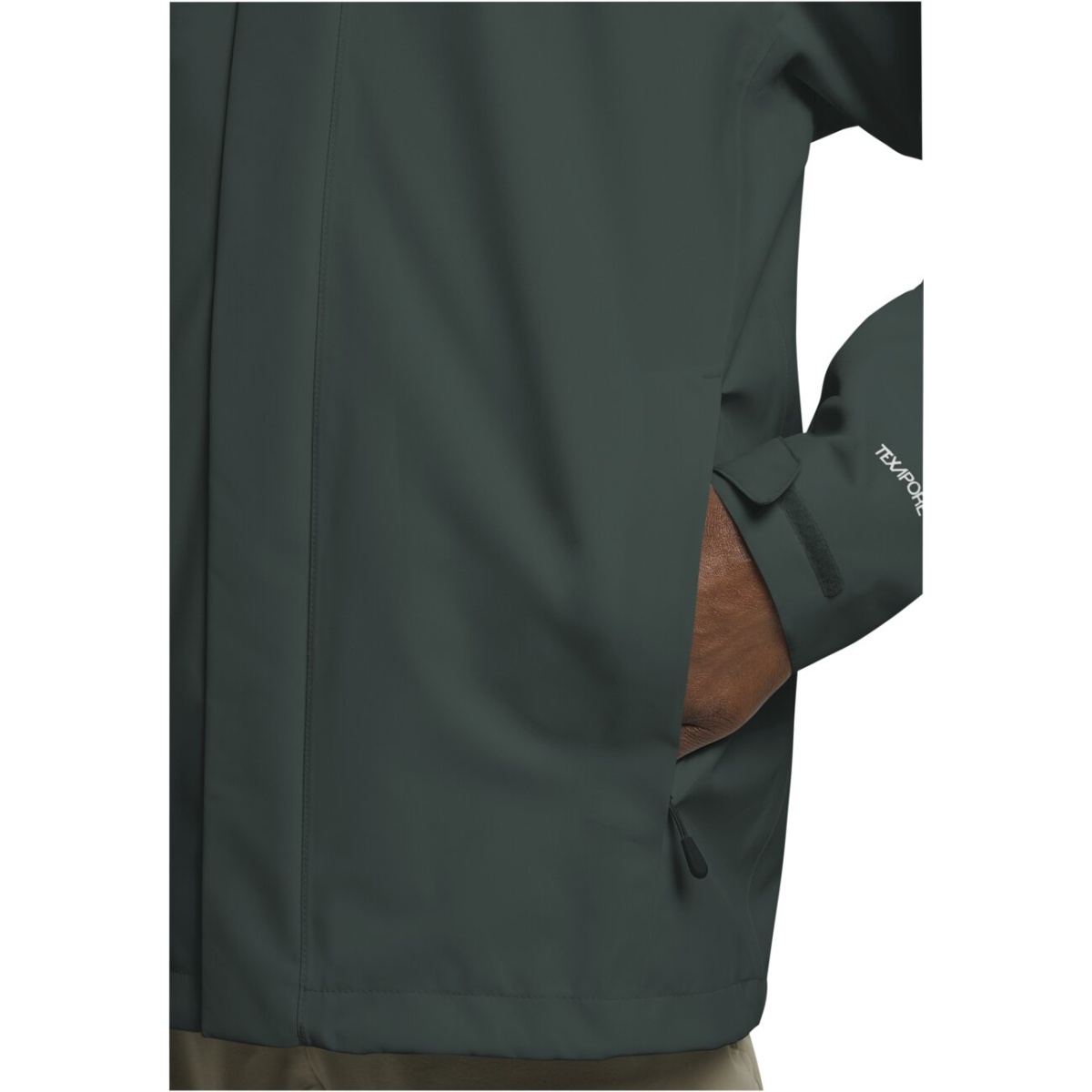 • wasserabweisende Reißverschlüsse und eine fest verbundene Kapuze schützen vor Wind und Nässe, während Hüfttaschen alles Wichtige aufbewahren oder bei Bedarf deine Hände wärmen.