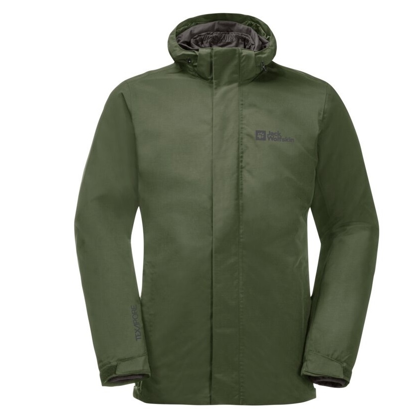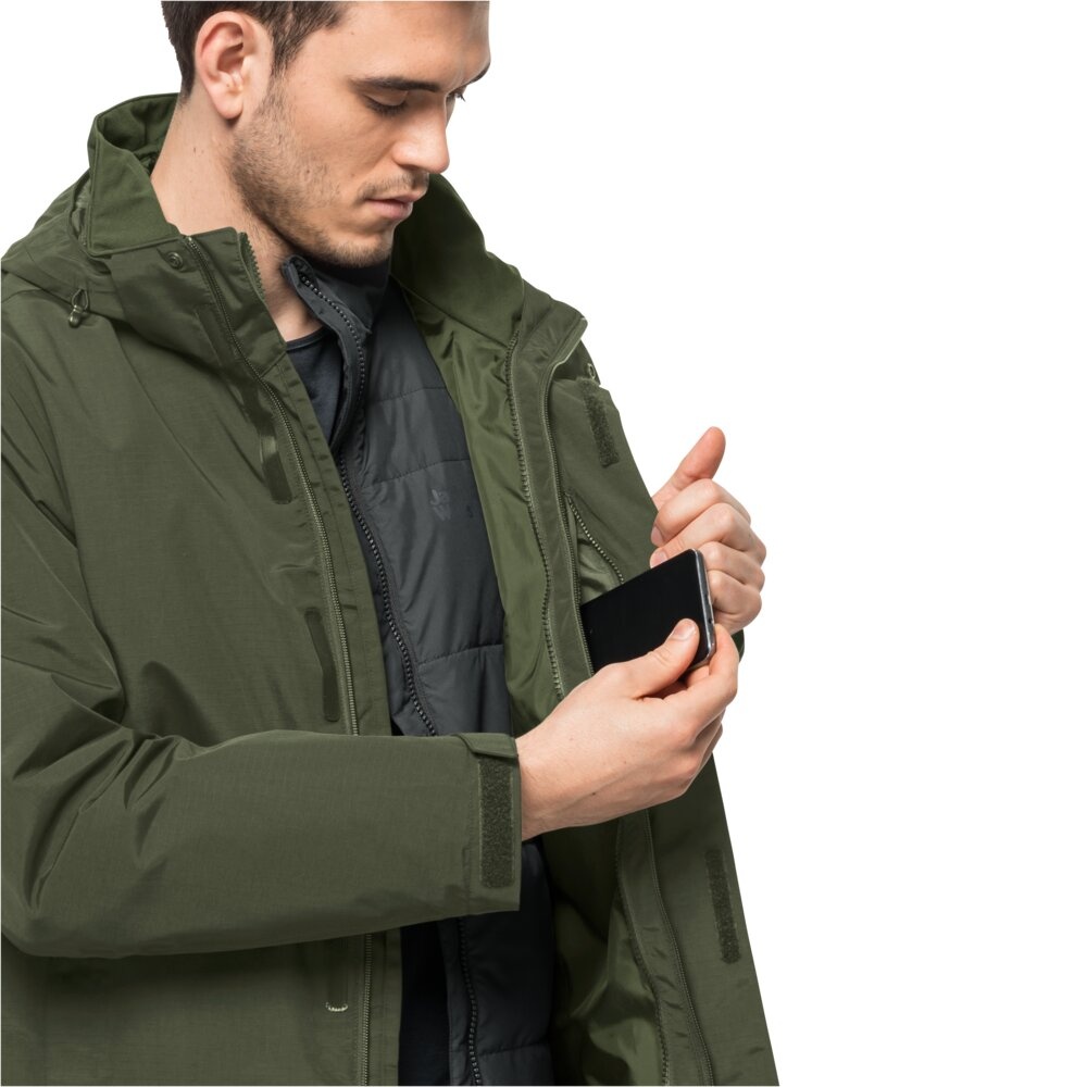 Jack Wolfskin Winterjacke Bergland 3in1 (atmungsaktiv, wasserdicht, winddicht) khaki/grün Herren