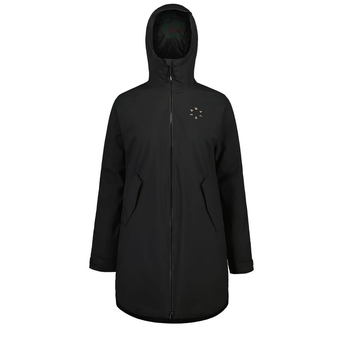 • raglanärmel und geshapter Saum, Patten-Taschen, Ärmel mit verstellbarer Manschette. Bedrucktes Innenfutter, runder Maloja-Schriftzug über der linken Brust