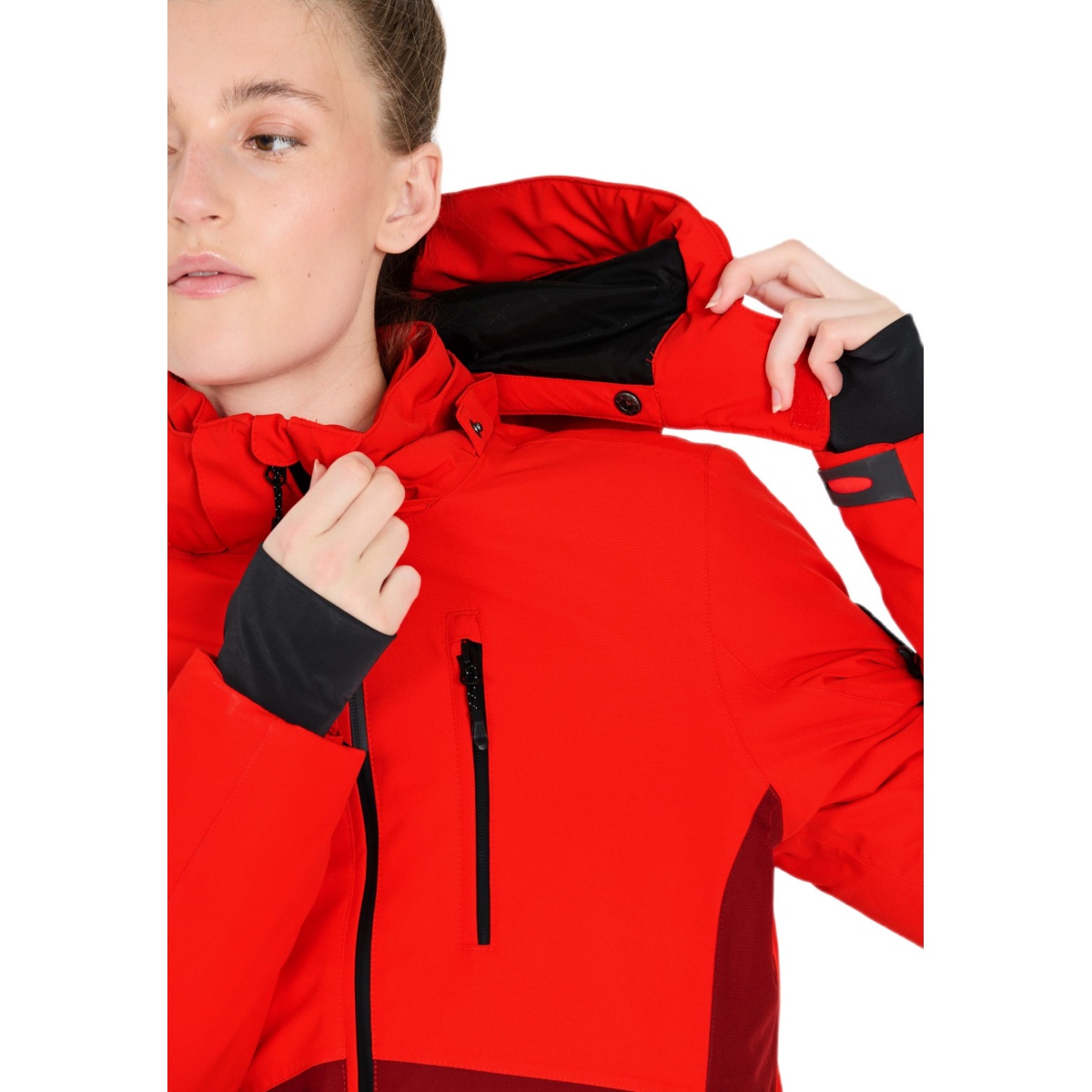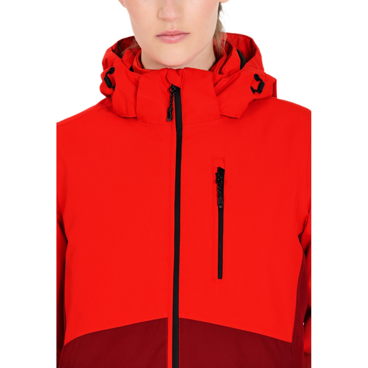 • der praktische Kinnschutz am Reißverschluss, die seitlichen Reißverschlusstaschen, die Brusttasche und die Skipasstasche ergänzen diese Skijacke optimal!