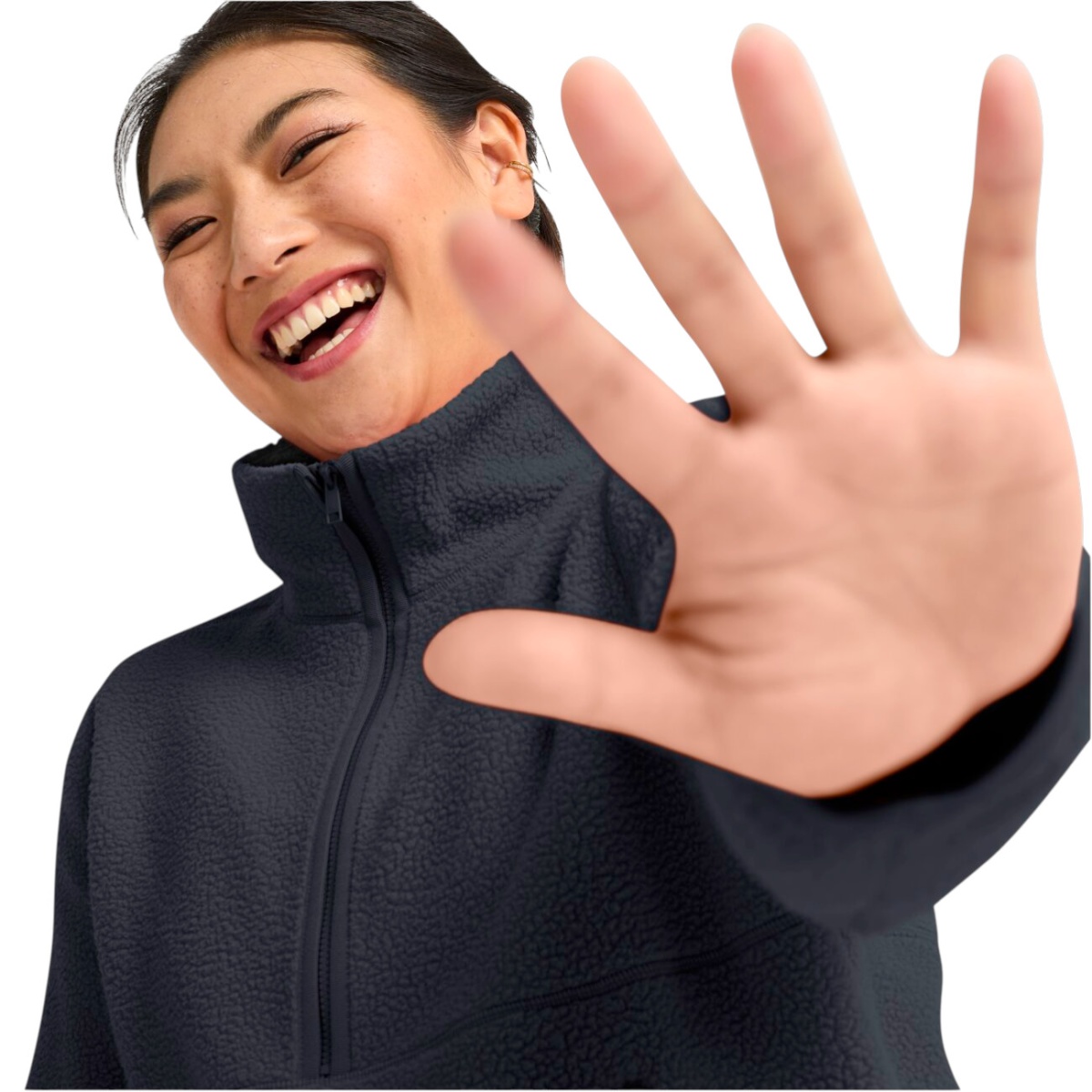 • der hohe Kragen, der halbe Reißverschluss und die elastischen Bündchen vereinen praktischen Komfort mit einem lässigen Look.