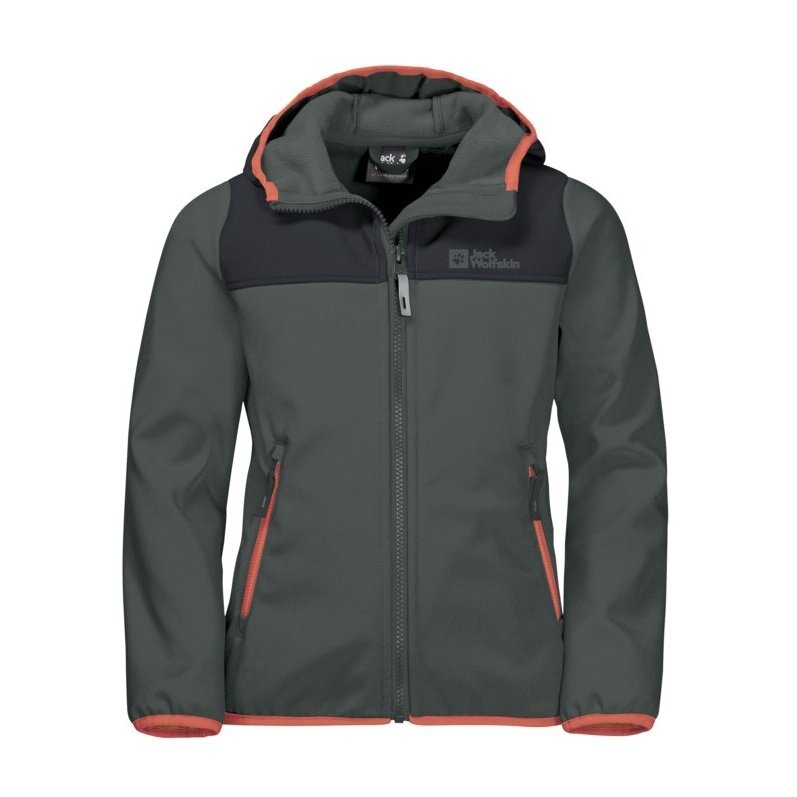 Jack Wolfskin Softshelljacke Fourwinds (wind-& wasserabweisend) dunkelgrün Kinder
